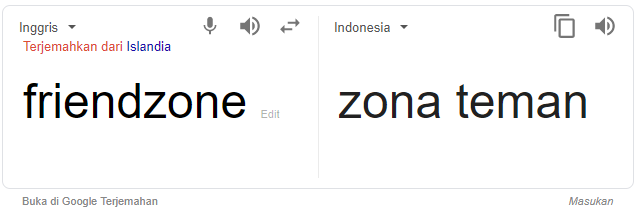 Jadi dapat artikan bahwa friendzone itu artinya “Zona Teman”.