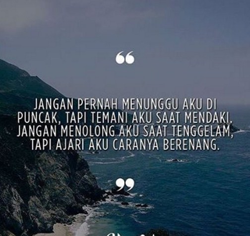 “Ketika banyak permasalahan yang menghampiri dirimu, janganlah meminta untuk lekas dihilangkan. Tapi mintalah agar bisa menjadi lebih dewasa.”